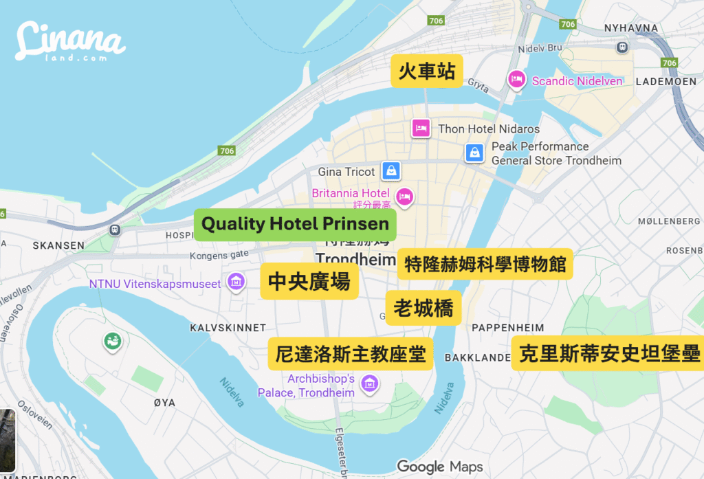 Quality Hotel Prinsen隸屬於Strawberry酒店集團旗下的一家中高檔商務酒店。位於市中心廣場旁邊,周圍環繞著餐廳、酒吧和購物街。房間有設計感,早餐更是整個行程中最豐富的一家酒店,價錢也實惠,非常推薦大家在遊覽特隆赫姆(Trondheim)時入住。